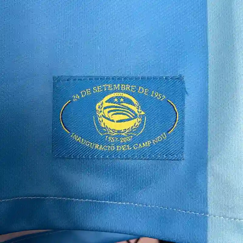 ✨ Maillot classique rétro vintage FC Barcelone extérieur 2007-08, avec son emblématique couleur bleu ciel et ses détails jaunes, resté célèbre pour être l'un des plus remarquables de la décennie.