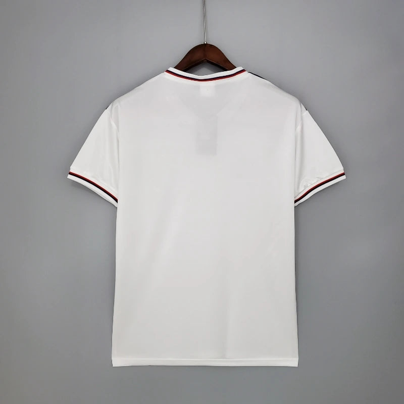 👕 Ce maillot blanc Admiral a été porté par l' équipe d'Angleterre lors de la Coupe du monde en Espagne en 1982. Il se distingue par son design épuré, avec des bandes rouges et bleues sur la poitrine et les épaules, ce qui en fait l'un des designs les plus emblématiques de l'histoire du football anglais.